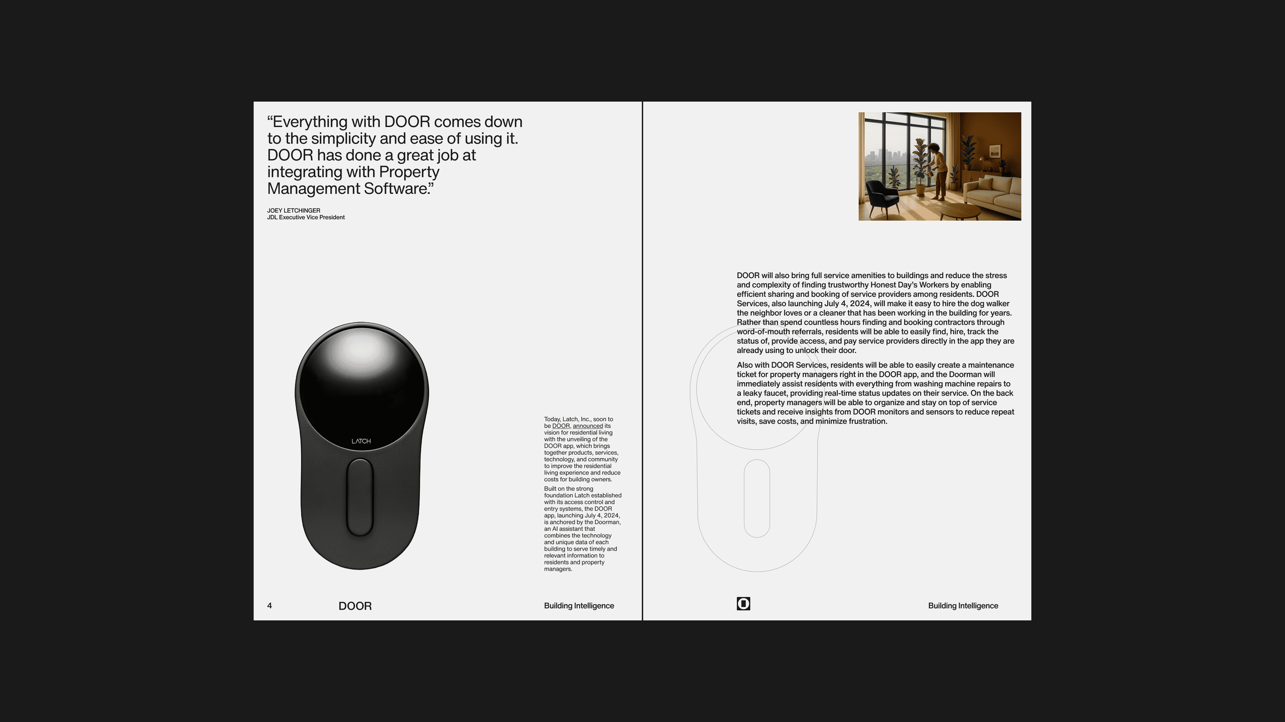 When Latch became DOOR, it marked a shift not just in name, but in ambition. The company was evolving from a single-product mindset into a full-stack platform shaping the emerging category of Building Intelligence. To support that transition, the brand needed to restore confidence, sharpen the story, and reflect the sophistication of a business now operating across hardware, software, and services.
